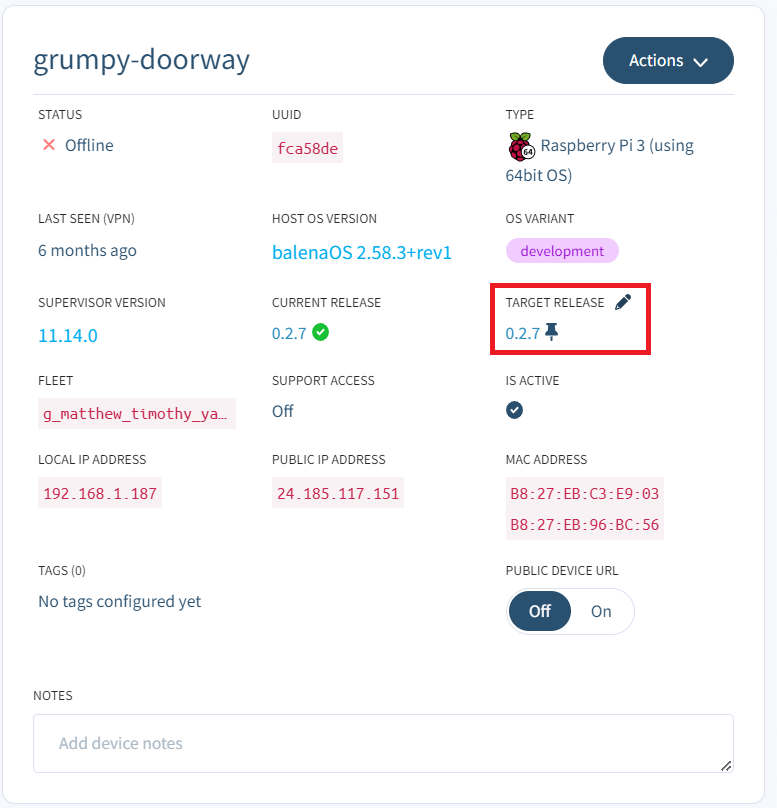 By default, all devices track the fleet release. However, you may wish to run a different release on select devices, for example, a development device or when performing a canary deployment.